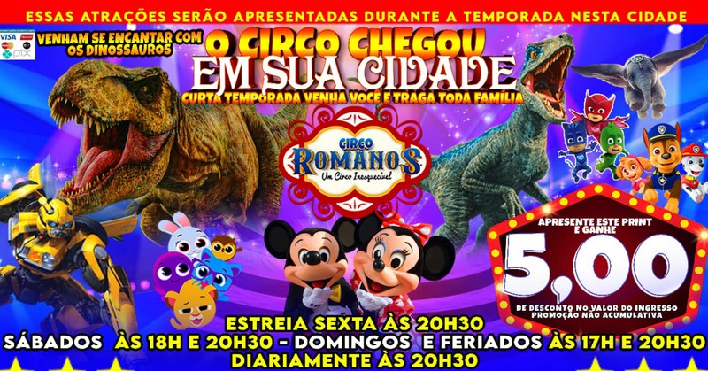Entre as novidades estará o grande Tiranossauro Rex com quase 8 metros de altura, Dumbo e o internacional baile das águas dançantes, diretamente de Las Vegas, além de toda a magia tradicional do circo e os shows infantis mais amados do Brasil.