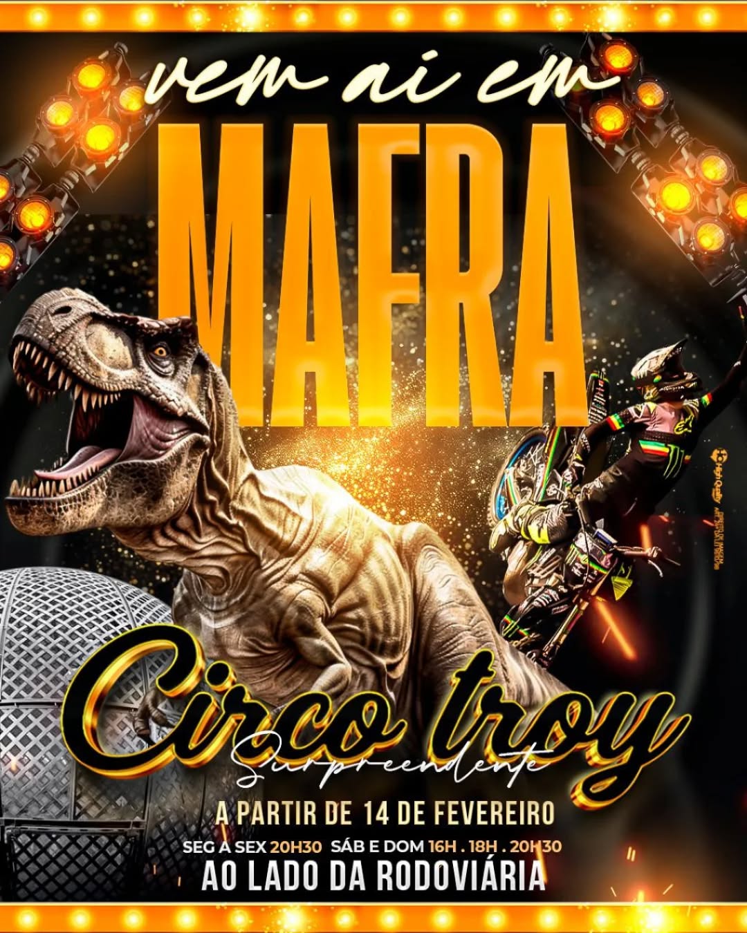 O Circo Troy, um dos maiores do Brasil, está instalado em Mafra ao lado da rodoviária. São diversas atrações incríveis para toda família! Pegue o bônus nos carros de som do circo ou antecipe seus ingressos online ou presencial antes das sessões para ganhar desconto na compra do ingresso no setor lateral.