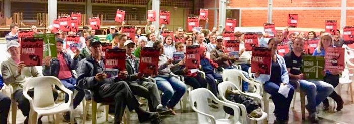 Na noite da quarta-feira, dia 29, a comunidade do Saltinho do Canivete recebeu as entidades que são contra a extração do óleo e gás de xisto e do carvão na região. Uma reunião igual aconteceu no mês de abril na localidade de Augusta Vitória.
