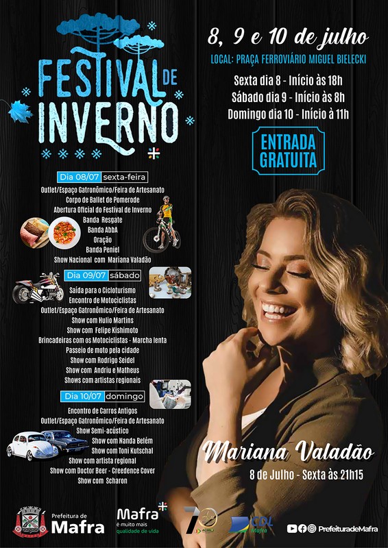 Maas explicou que o Festival visa proporcionar lazer para a população mafrense e da região e ainda oportunidades para o fortalecimento da arte, do turismo e do comércio local, além de apresentações para divulgação e promoção dos artistas mafrenses.