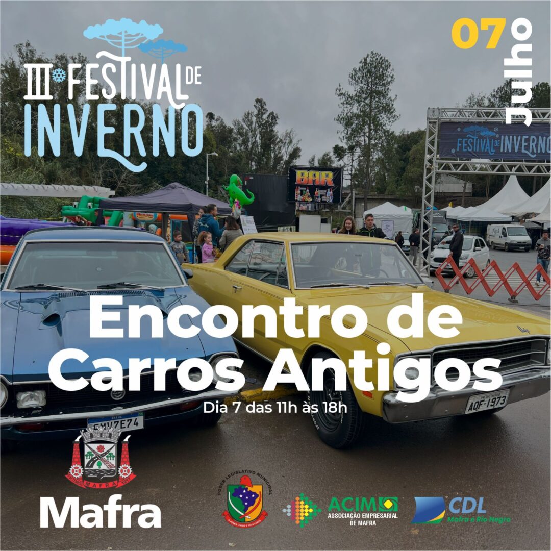 Cicloturismo, encontro de motos e de carros antigos, shows musicais, fazendinha, espaço gastronônimo, outlet, missa, feira de artesanato são algumas das atrações programadas para o III Festival de Inverno que acontece neste fim de semana em Mafra, nos dias 5, 6 e 7 de julho, na Praça Ferroviário Miguel Bielecki.