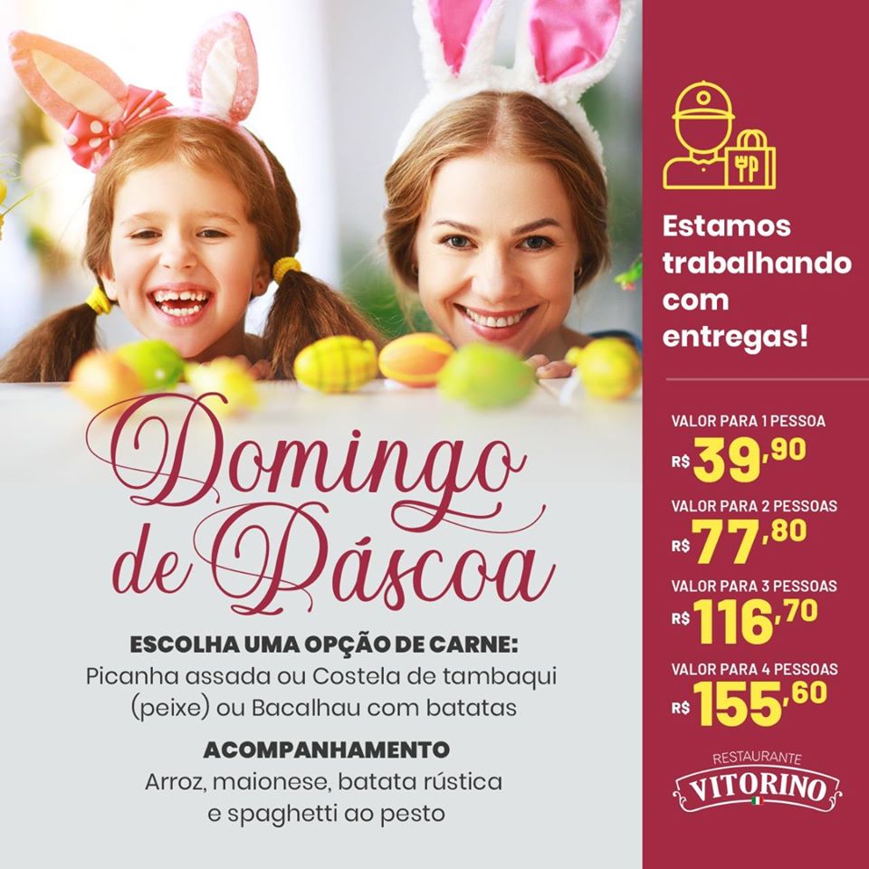 Confira o que o Restaurante Vitorino preparou para esse fim de semana especial. Você pode fazer seus pedidos pelo Whatsapp 47 9 8497 5002. Aproveite esse momento especial com sua famÃlia e conte com o Restaurante Vitorino que oferece uma refeição saborosa para ficar ainda melhor!
