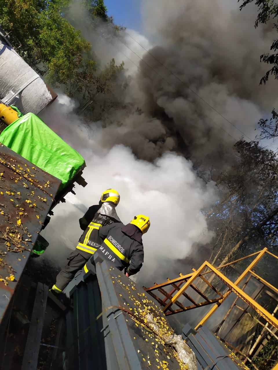 Por volta das 16h30 deste sábado (07), o Corpo de Bombeiros de Mafra se deslocou até a “Baixada do Peri”, pátio de depósito da empresa Rumo, para atender a solicitação de incêndio em aproximadamente duas toneladas de mangueiras que eram utilizadas para os freios dos vagões, acondicionadas sobre um vagão aberto em baixo de uma rede de alta tensão.