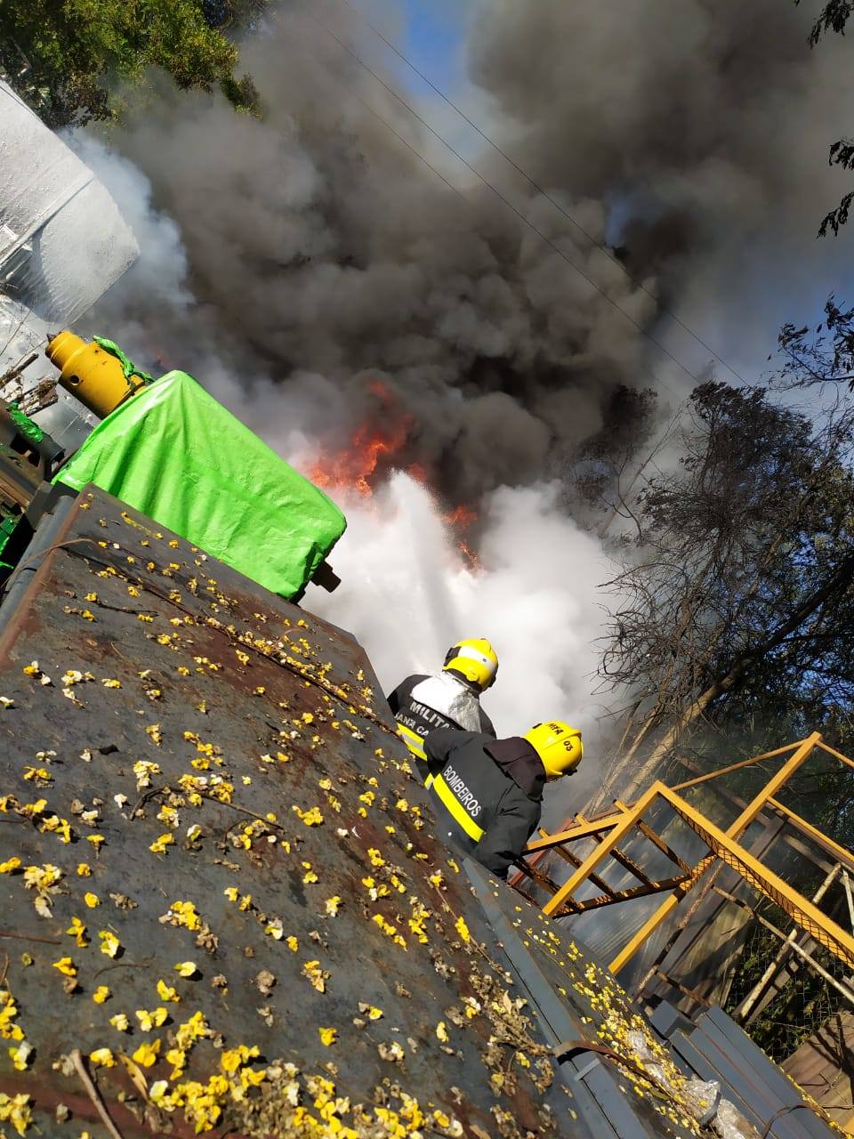 Para o combate as chamas e o rescaldo, foram utilizados aproximadamente 7.000 litros de água e 50 litros LGE (líquido gerador de espuma).