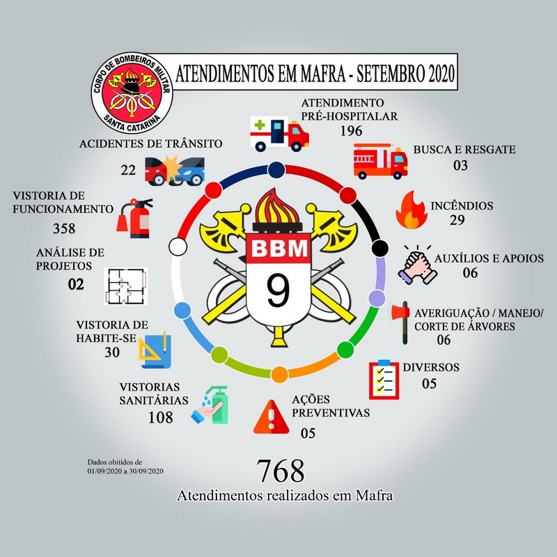O Corpo de Bombeiros de Mafra divulgou nesta semana o número de atendimentos efetuado pela corporação no mês de setembro no municÃpio.