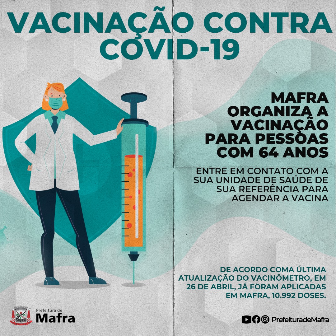 De acordo coma última atualização do VACINÔMETRO, em 26 de abril, já foram aplicadas em Mafra, 10.992 doses.