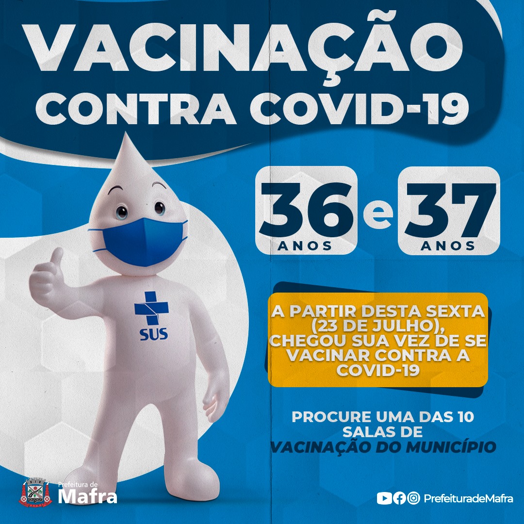 Seguindo com a campanha de imunização contra Covid-19, Mafra começa nesta sexta-feira, 23, a vacinação de pessoas de 36 e 37 anos. Até o dia 21 de julho, o município vacinou com a primeira dose 27257 pessoas, chegando ao percentual de 48,19% da população vacinada.