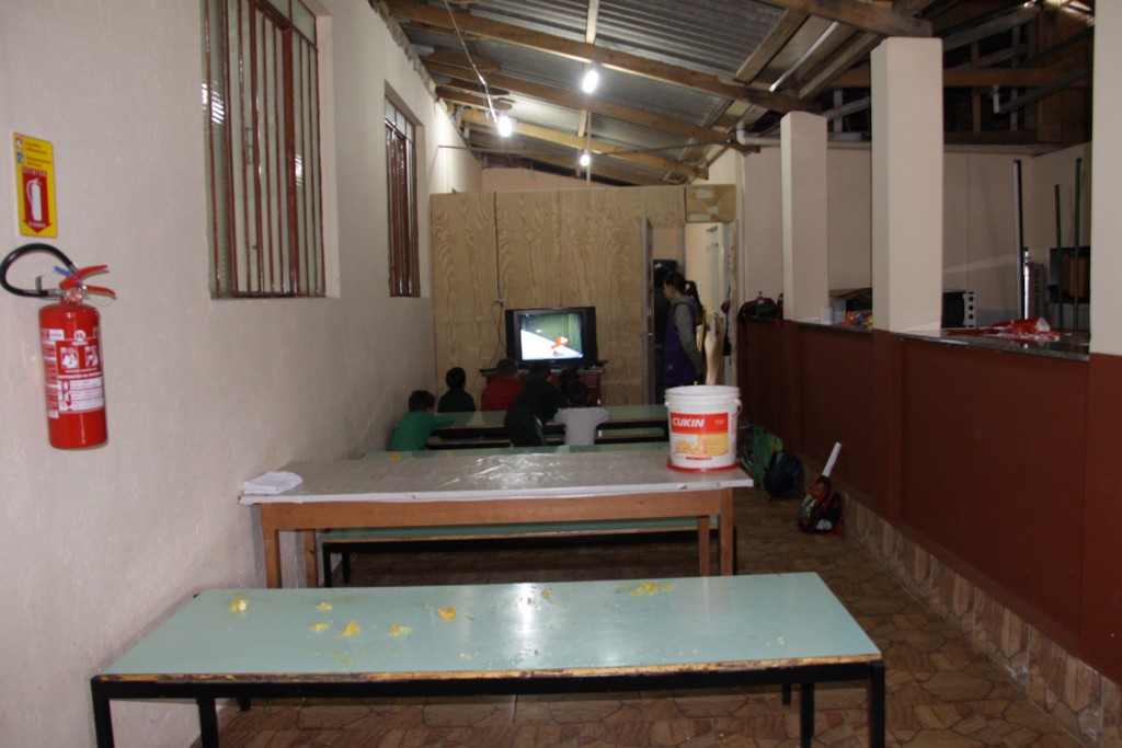 Atualmente os alunos estão tendo aulas no salão paroquial da igreja do bairro em um espaço apertado e com pouca estrutura para abrigar as crianças do maternal 1 e 2 e duas turmas do primário. “São crianças de idades diferentes que estudam todas juntas”, descreve um dos entrevistados. As mesas do refeitório foram colocadas de maneira improvisada próxima a churrasqueira e o banheiro do salão não pode ser usado, apenas em emergências por conta de fortes chuvas, caso contrário, as crianças precisam atravessar a grama e utilizar o banheiro do lado de fora que não é adaptado para crianças. “As crianças precisam ir ao banheiro pelo barro, às vezes pegam chuva. Já tive que lavar os pés da minha filha para entrar na aula de novo depois de ter ido ao banheiro”, desabafa outra mãe.