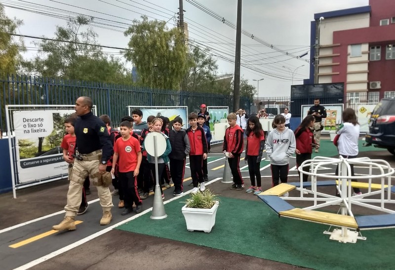 Depois de assistir à palestra sobre a necessidade de seguir as regras de circulação atualmente e no futuro, quando muitos se tornarão condutores, as crianças colocaram em prática os ensinamentos recebidos em uma mini-pista simulada com placas de trânsito, faixas de pedestres e semáforo luminoso.