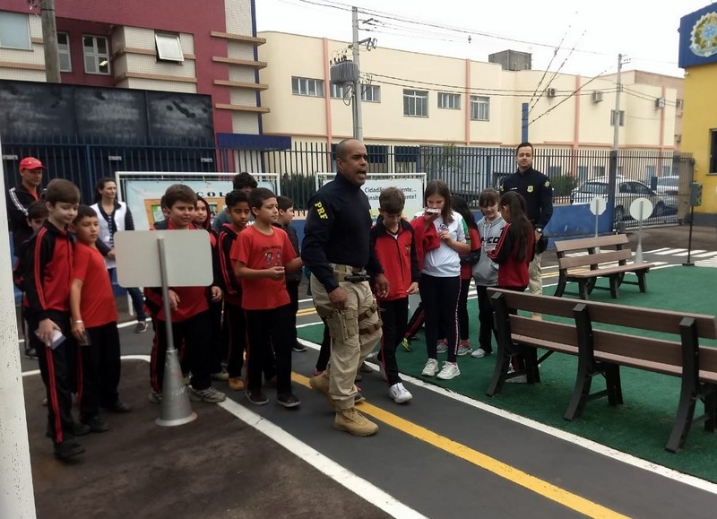 Depois de assistir à palestra sobre a necessidade de seguir as regras de circulação atualmente e no futuro, quando muitos se tornarão condutores, as crianças colocaram em prática os ensinamentos recebidos em uma mini-pista simulada com placas de trânsito, faixas de pedestres e semáforo luminoso.