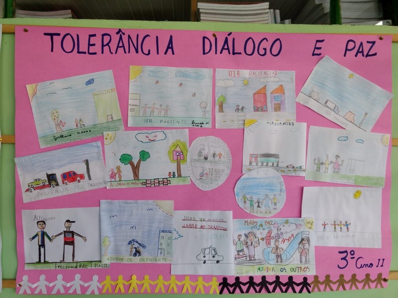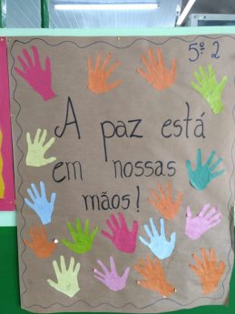 Outras escolas também foram criativas ao trabalharem o tema que visa uma sociedade sem violência, baseada nos princípios da paz e que busca resolver conflitos por meio do diálogo e da colaboração.