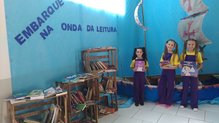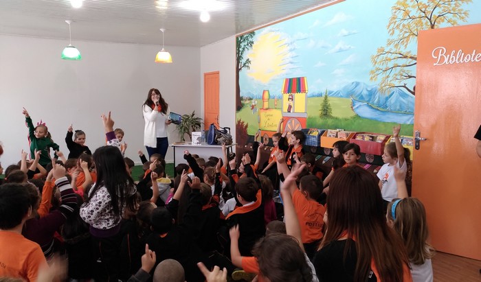 Na EMEB Augusta Vitória, da localidade de Bela Vista do Sul, o dia da troca de livros movimentou as crianças e adolescentes em torno dos títulos diferentes trazidos pelos colegas. “Uma criança que lê será um adulto que pensa” foi o slogan da escola para a data, que possibilitou a circulação de temas como a “Peppa”, “As aventuras no Museu” e “O Cavalinho Azul”, entre outros. A EMEB Evaldo Steidel, do Saltinho do Canivete, também trabalhou a Lei 4.285.