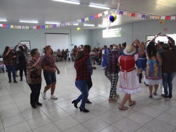 A tarde foi embalada no clima da quadrilha, com muitos doces e pipoca e, para terminar, foi realizado o famoso e esperado bailinho, que expressa a felicidade, o companheirismo e a vivacidade da melhor idade.