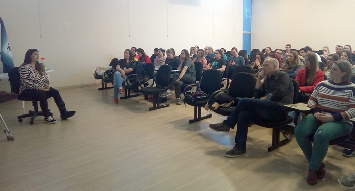 A segunda palestra, sobre saúde mental, abordou o tema “transtorno afetivo bipolar, esquizofrenia e dependência química”, com a médica Andrea Nolli Malluta, mestre em Educação pela Univali. Neste espaço foi possível a discussão sobre os temas, como identificá-los e os encaminhamentos necessários dos pacientes.