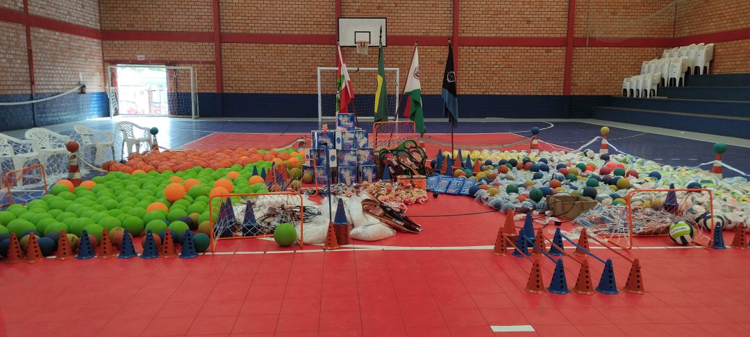 Com um investimento no valor de cerca de R$ 77 mil de recursos da Educação, foram adquiridos através do processo licitatório – Pregão Eletrônico Registro de Preços número: 019/2023 Processo número: 063/2023 – materiais esportivos como bolas (de Voleibol oficial, Basquetebol, Handebol, de Tênis de mesa, de Futsal e de Futebol de campo entre outras), além de apitos, cones, cronômetros, kits de argolas de arremesso, Peso de arremesso para atletismo 1 kg e outros materiais para a modalidade, também para berçário e educação infantil como bonecas, jogo de pega varetas, colchonetes, etc.