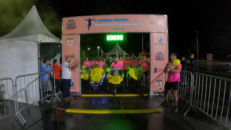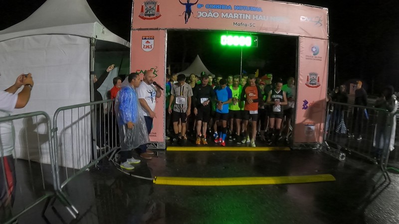 O mau tempo e as fortes chuvas não atrapalharam a 8ª Corrida Noturna “Professor João Martin Hau Neto”, realizada no último sábado, 26, com 160 corredores, com destaque para o projeto Pernas Solidárias, que contou com participantes de Mafra, Rio Negro e Curitiba. Um dos momentos marcantes foi a chegada dos vencedores Eleeu Teixeira Correia, 1º lugar masculino, Bruno Moro, 2º lugar e Edson Luiz Devoiaski, em terceiro lugar.