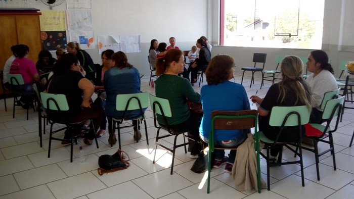 Nos dias 17 e 18 de julho foram feitas capacitações para um total de 60 merendeiras, dando continuidade à formação continuada que começou no início do ano letivo. Nessa edição receberam orientações sobre “Trabalho em Equipe” e sobre “O cardápio e suas alterações – estudos de casos sobre o cardápio”, dadas pelas Nutricionistas da Secretaria, Giovana Kundlatsch e Letícia Pimentel.
