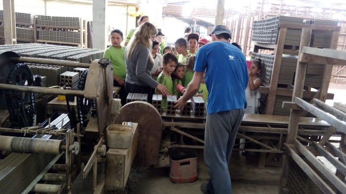 “Tivemos a ideia de visitar uma Olaria, a Canaã Seidel&Strobel, da localidade do Rio Branco, onde os alunos foram recebidos pelos proprietários que lhes ensinaram como o tijolo é fabricado”. Lá os alunos puderam observar o processo de produção e mostraram muita curiosidade e empolgação.