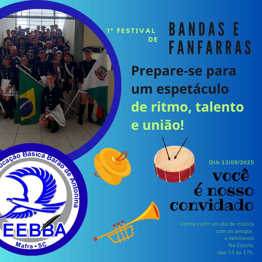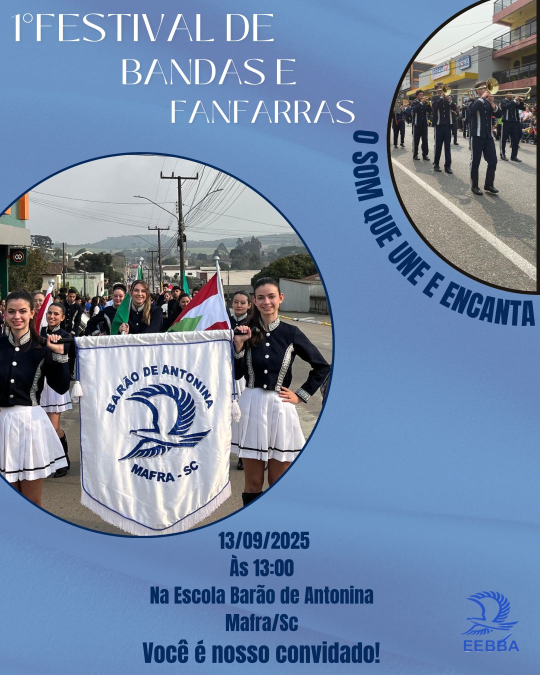 Venha prestigiar este momento especial de música, cultura e confraternização no 1º Festival de Bandas e Fanfarras de Mafra e Rio Negro!