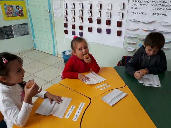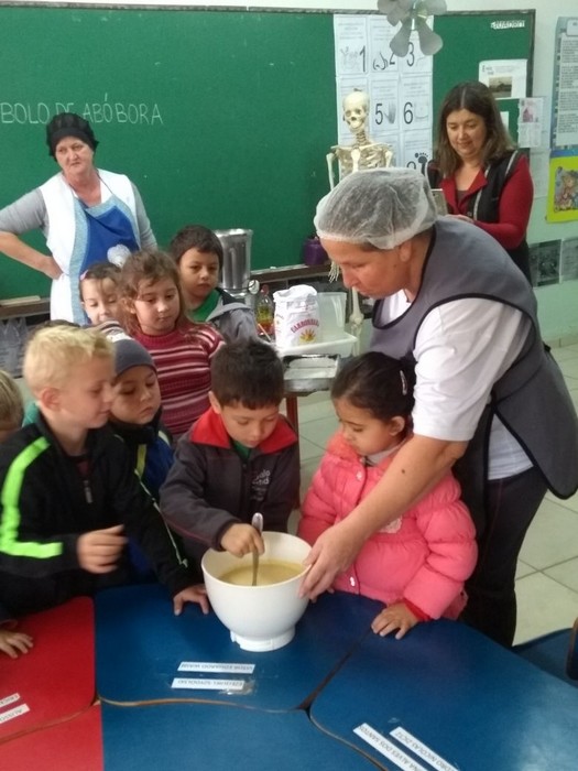 “A família interagindo com a escola”. Esse foi o resultado positivo de uma simples receita de bolo de abóbora feito para o lanche na EMEB Evaldo Steidel, na localidade de Saltinho do Canivete. O bolo fez parte do projeto de receita saudável, desenvolvido pela professora Ivanir, com a ajuda das crianças do Jardim I e II, dentro do planejamento de Educação Alimentar e Nutricional, que as escolas devem realizar anualmente.