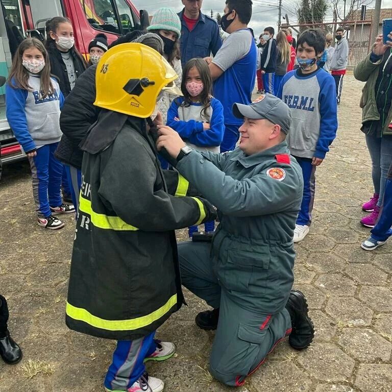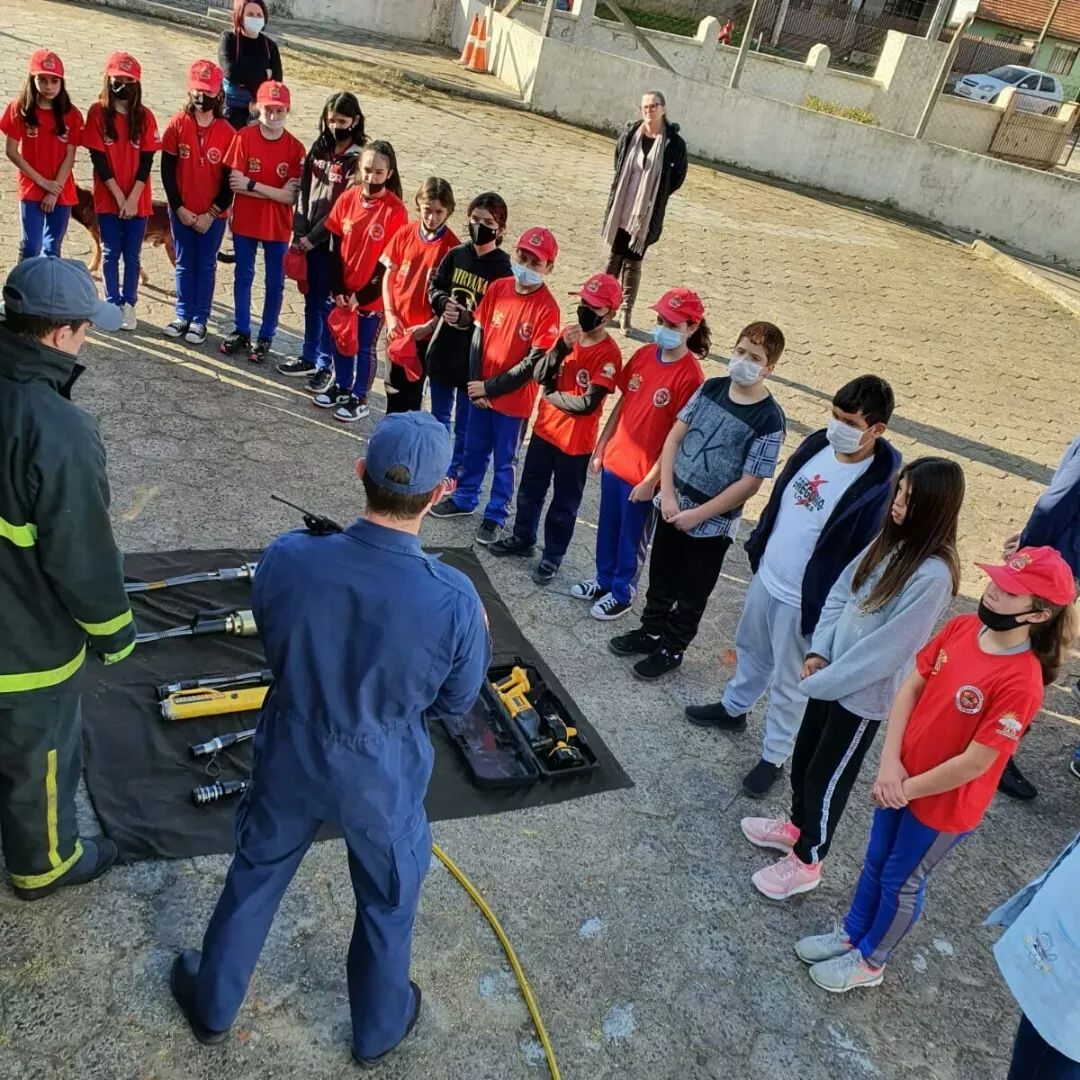 Nesta terça-feira, nos perÃodos da manhã por volta das 10h e no perÃodo da tarde por volta das 15h30, as Guarnições das Viaturas ABTR-100, ASU-467 e AR-47 do Corpo de Bombeiros de Mafra se deslocaram até a Escola de Educação Básica Monteiro Lobato para realizar visita como parte do Curso de Formação de Bombeiro Mirim.