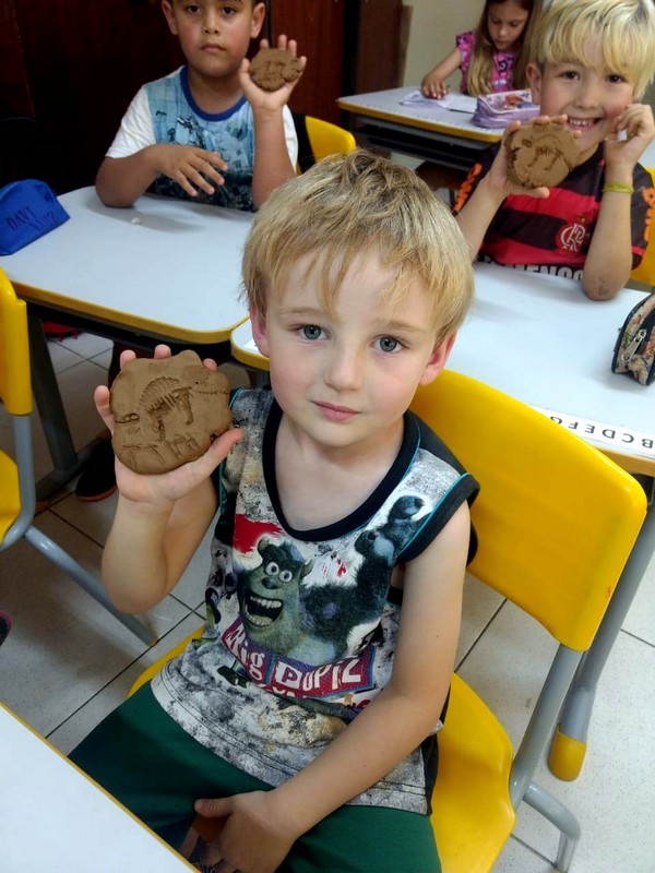 A criatividade das ações empolgou tanto alunos como professores. O CEIM Breno Cauan Garcia trabalhou de diversas formas realizando esculturas em argila, histórias contadas na pedra, a descoberta dos dinossauros e pinturas com carvão.