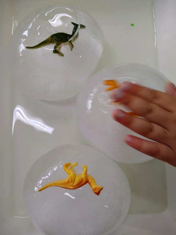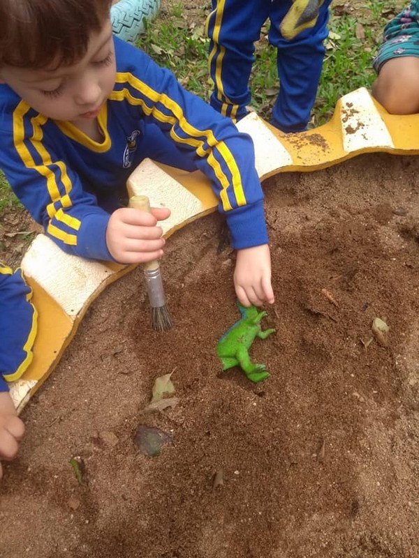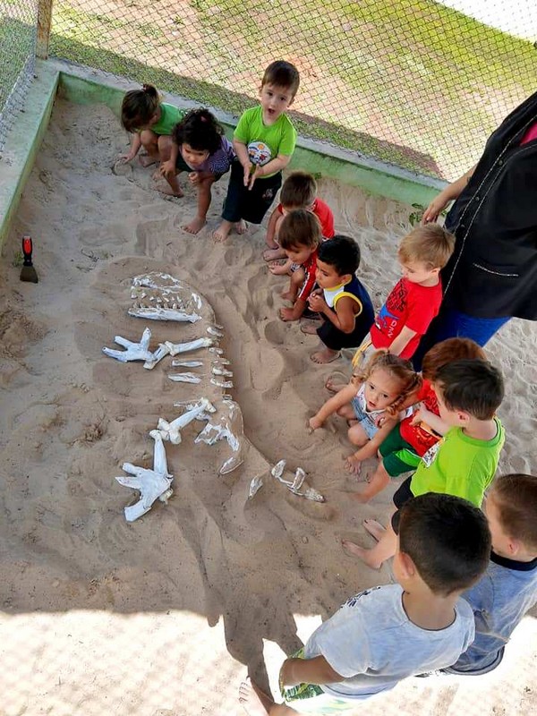 Na EMEB Felipe Carvalho Martins os alunos dos Jardins I e II trabalharam na confecção de ovos de dinossauros com a professora Patrícia e visitaram o Museu da Terra e da Vida (Cenpáleo – UnC). O Comecinho de Vida também levou seus alunos para uma visita ao Cenpáleo. No CEIM Anjo da Guarda o aprendizado foi brincando com escavações arqueológicas e construção de caverna. A CEIM Restinga trabalhou com argila para construção de fósseis, escavações na areia e também construção de cavernas, além de utilizarem vídeos relacionados ao tema.