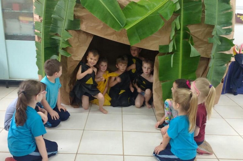 A EMEB Augusta Vitória viajou para o mundo dos homens das cavernas e dos dinossauros. Contou com palestra sobre o tema, proferido pela Bióloga, Mestre Cristiane Pscheidt, responsável pelo Ensino no Museu da Terra e da Vida – Cenpáleo da UnC, e ainda construíram uma caverna, com escritas rupestres feitas com carvão.