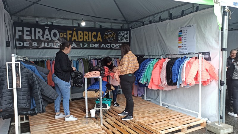 O Espaço outlet concentrou representantes dos lojistas locais no II Festival de Inverno de Mafra. Dez expositores participam do evento e mostram seus produtos para o público que passa pela praça Miguel Bielecki nesses três dias de festa.
