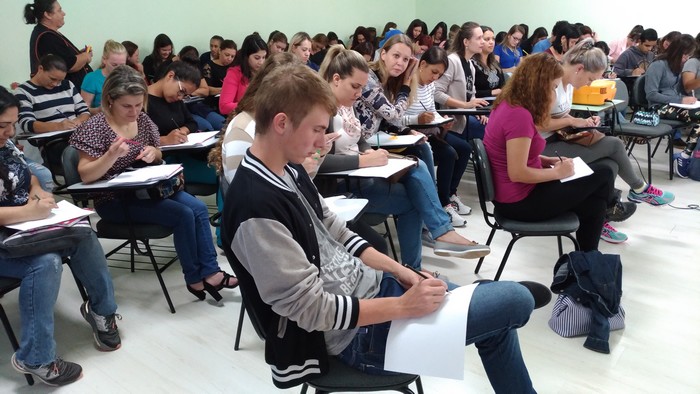 Durante a capacitação os estagiários foram orientados quanto à sua função em sala de aula bem como quanto às regras de convivência.