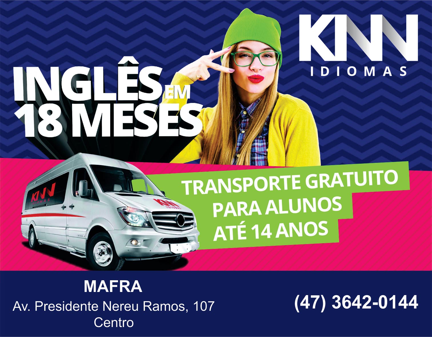 A unidade da KNN Idiomas em Mafra fica localizada na Av. Presidente Nereu Ramos, 107, no Centro. Contato: (47) 3642-0144.