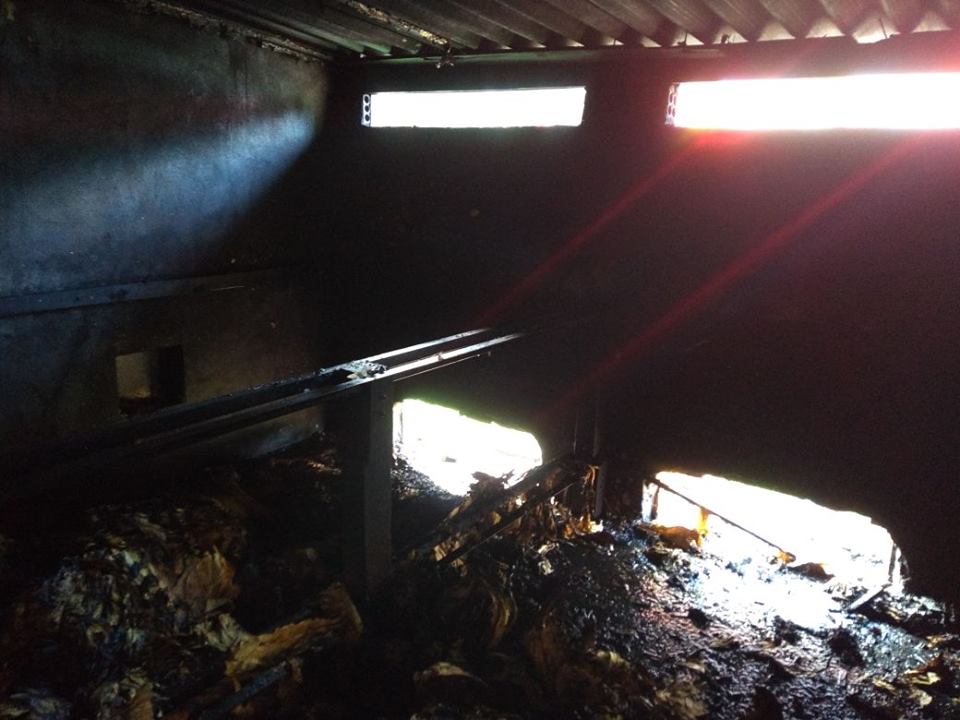Ao lado da estufa há outra edificação utilizada como deposito de fumo, sendo que toda estrutura é de aproximadamente 168 m². O incêndio ficou restrito somente a uma área de 40 m².
