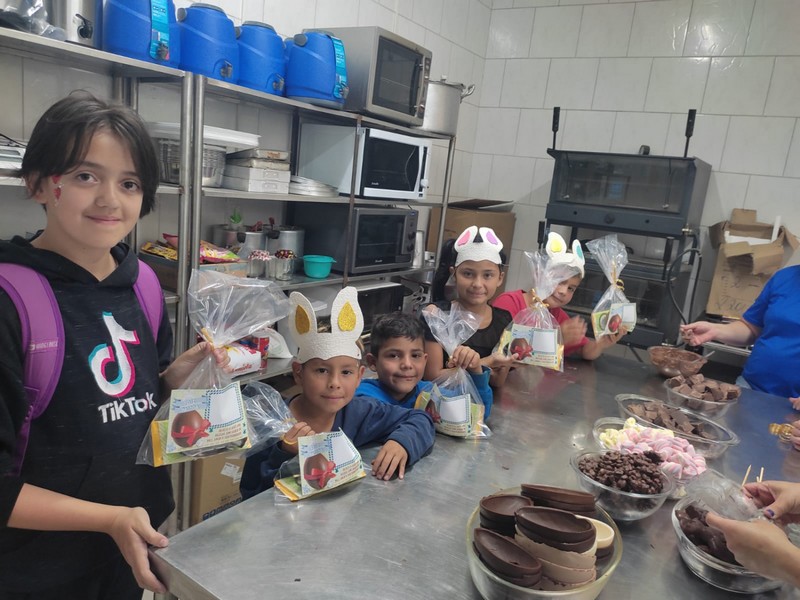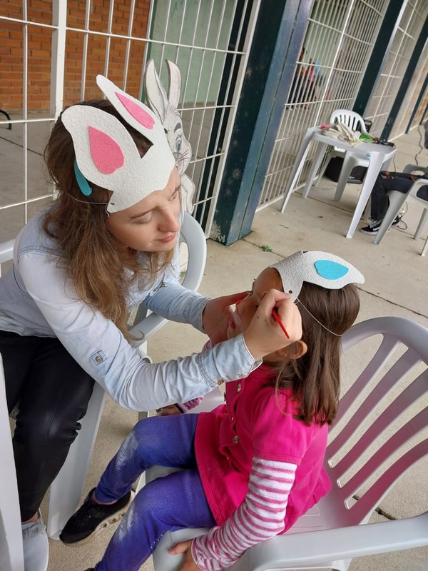 Na oficina do dia 8 de abril, às crianças e adolescentes puderam confeccionar seus ovos de Páscoa e ainda participaram de atividades de artesanato de Páscoa, pintura de rosto e brincadeiras como caça aos ovos.