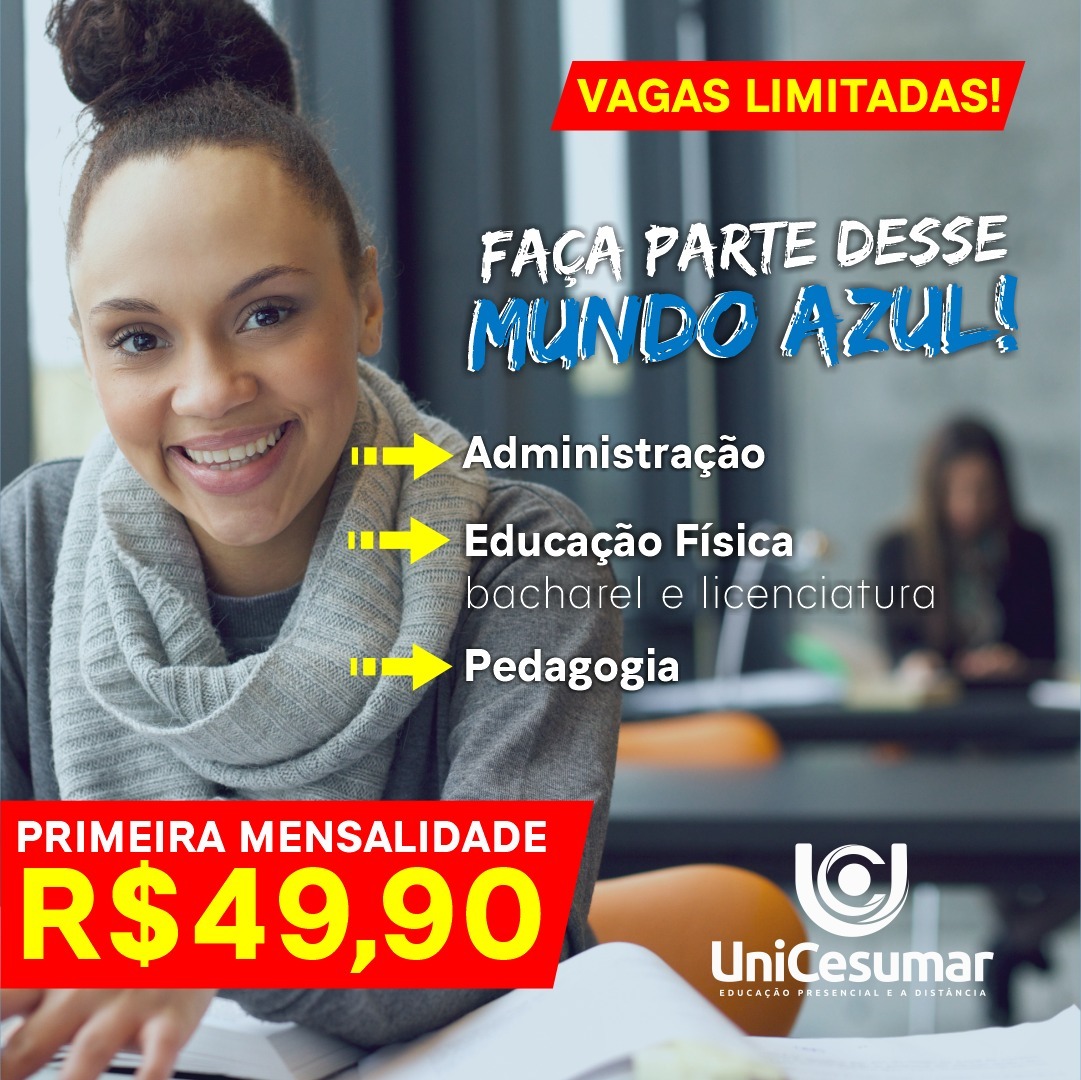 Faça a sua graduação na Unicesumar Mafra. A primeira mensalidade custa apenas R$ 49,90. Vagas limitadas! O polo em Mafra fica localizado na Rua Marechal Floriano Peixoto, nº 1355. Telefones para contato: (47) 3645-0670 / 9 8857-0028 (WhatsApp).