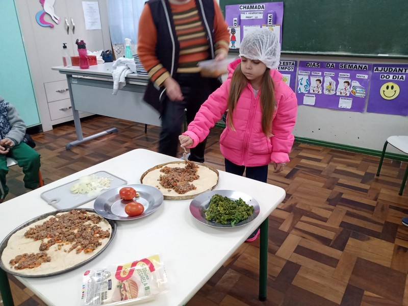 Alunos do pré I matutino trabalharam de forma concreta a profissão pizzaiolo, inclusive fizeram pizza e depois as saborearam.