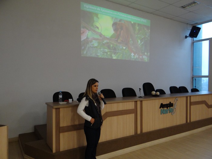 Na manhã do dia 28, última sexta-feira, no auditório da Amplanorte, a palestrante e coordenadora estadual do programa de Vigilância da Febre Amarela na DIVE/SC, Renata R. Gatti, abordou os dados epidemiológicos do estado, o ciclo de transmissão da doença, sintomas, vacinação e enfatizou a importância da população informar as autoridades de saúde em até 24 horas qualquer morte ou adoecimento de macacos na região, para que seja detectado o caminho que o vírus está se dispersando e os próximos municípios a serem atingidos.