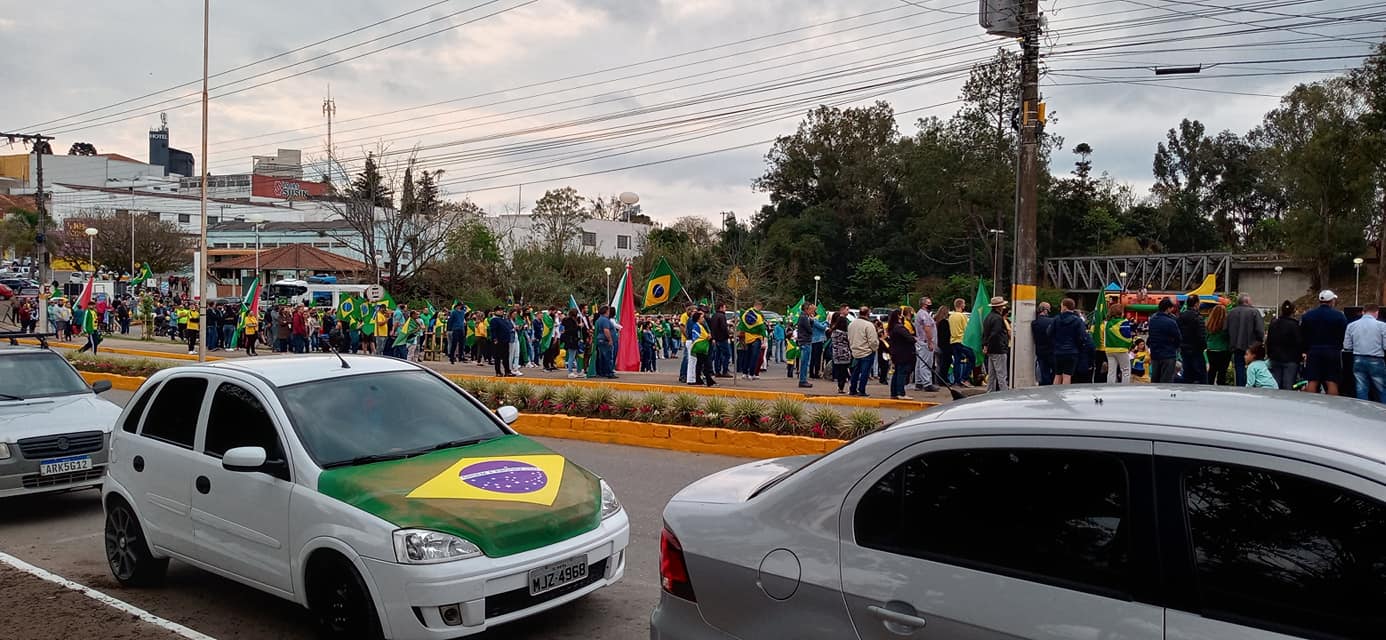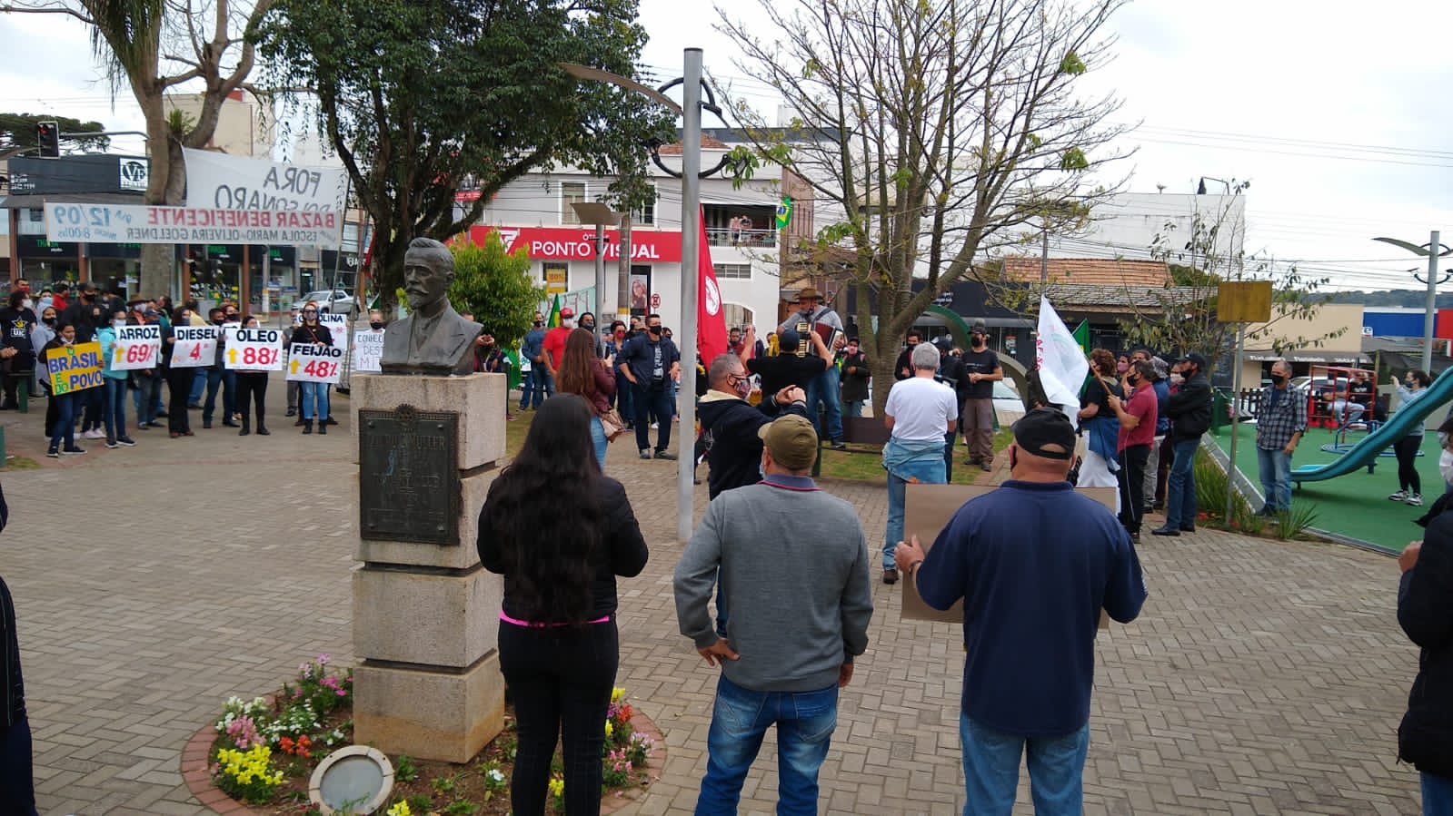 Manifestantes se reuniram na tarde desta terça-feira na Praça Miguel Bielecki, em Mafra. Em seguida uma carreata iniciou.