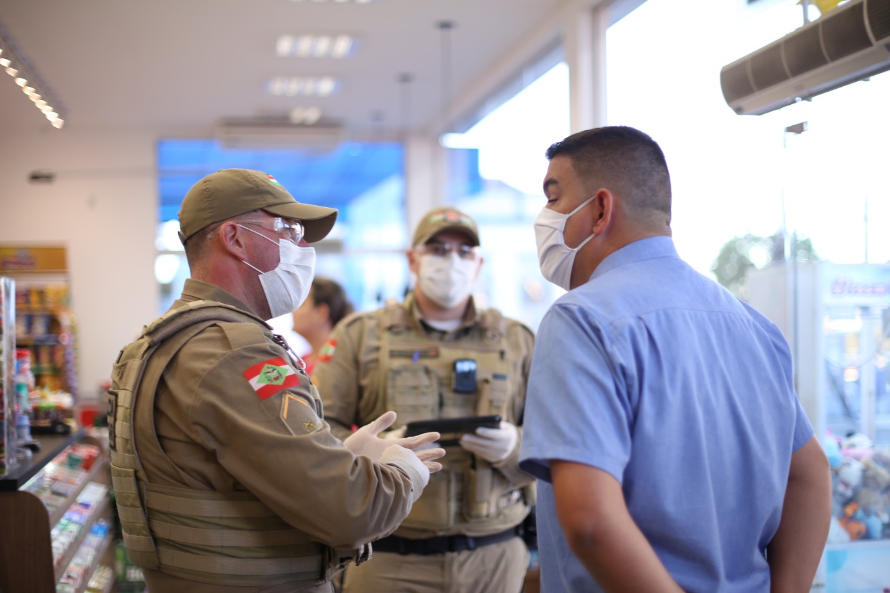 O Comando da Guarnição Especial de Mafra informa que neste sábado (9), a Patrulha Covid-19 será reforçada com mais uma guarnição para em conjunto com a Prefeitura Municipal de Mafra e com o apoio da Câmara de Dirigentes Lojistas, intensificar a fiscalização nos estabelecimentos comerciais em geral, tendo como objetivo principal a orientação aos lojistas para que atentem as normativas contidas nos Decretos do Governo Estadual e nas Portarias da secretaria de Estado da Saúde, evitando assim as medidas administrativas (notificação, multa e interdição) e até judiciais que possam advir de uma desobediência a tais normas.