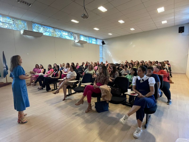 Cerca de 100 mulheres funcionárias públicas da Prefeitura de Mafra iniciaram a manhã do dia 8 de março com um momento dedicado à reflexão sobre o significado do seu dia. Elas foram recebidas no Auditório da Amplanorte, onde ouviram sobre a importância da imagem profissional e “como querem ser percebidas no trabalho”, apresentação feita pela servidora Rafaela de Freitas Nardo e ainda sobre a necessidade do investimento comportamental, “cuidado com o seu interior, que vai refletir no exterior”, proferido pela servidora Dircélia Pilz Mazur. “Quando eu cuido de mim internamente isso se refletirá externamente”, declarou.