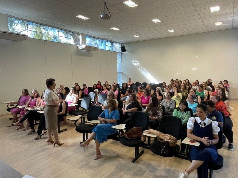 Cerca de 100 mulheres funcionárias públicas da Prefeitura de Mafra iniciaram a manhã do dia 8 de março com um momento dedicado à reflexão sobre o significado do seu dia. Elas foram recebidas no Auditório da Amplanorte, onde ouviram sobre a importância da imagem profissional e “como querem ser percebidas no trabalho”, apresentação feita pela servidora Rafaela de Freitas Nardo e ainda sobre a necessidade do investimento comportamental, “cuidado com o seu interior, que vai refletir no exterior”, proferido pela servidora Dircélia Pilz Mazur. “Quando eu cuido de mim internamente isso se refletirá externamente”, declarou.