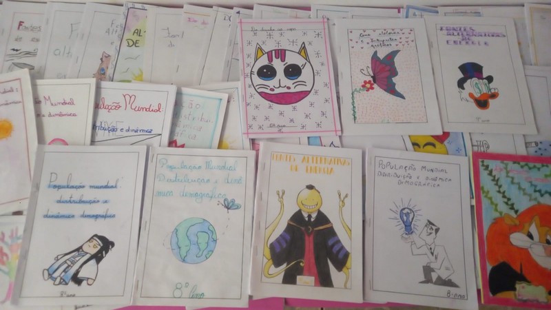 Ao término da confecção dos livrinhos foi organizada uma exposição, para que os demais alunos da escola pudessem folhear os trabalhos, de modo que se ambientassem com a matéria.