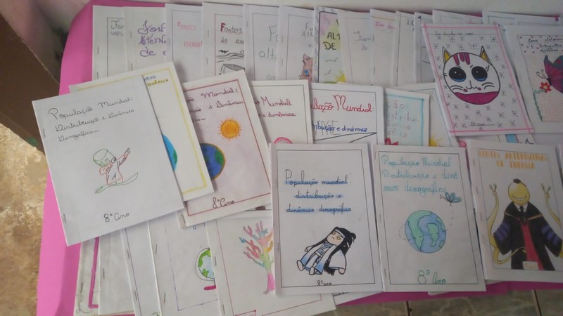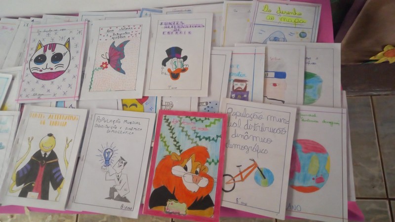 Ao término da confecção dos livrinhos foi organizada uma exposição, para que os demais alunos da escola pudessem folhear os trabalhos, de modo que se ambientassem com a matéria.