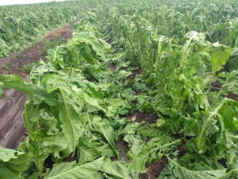 O granizo atingiu plantações de fumo, causando a perda total da safra. Nesta época do ano as lavouras já receberam o tratamento final de adubo e salitro ficando prontas para a colheita, com a tempestade desta semana toda a produção foi perdida, já que neste período a planta não se recupera mais.