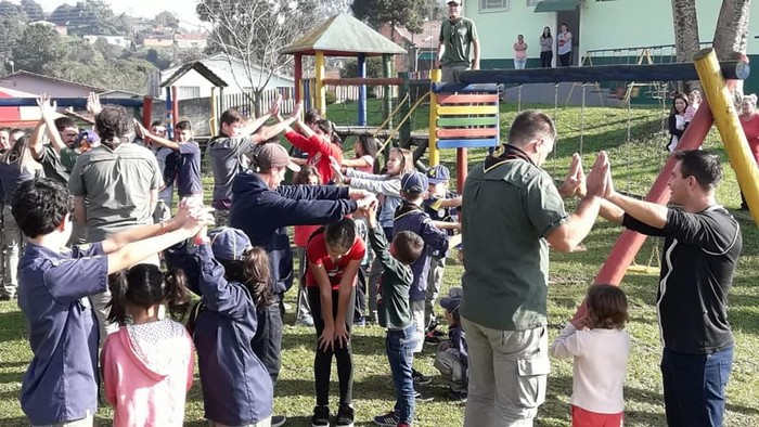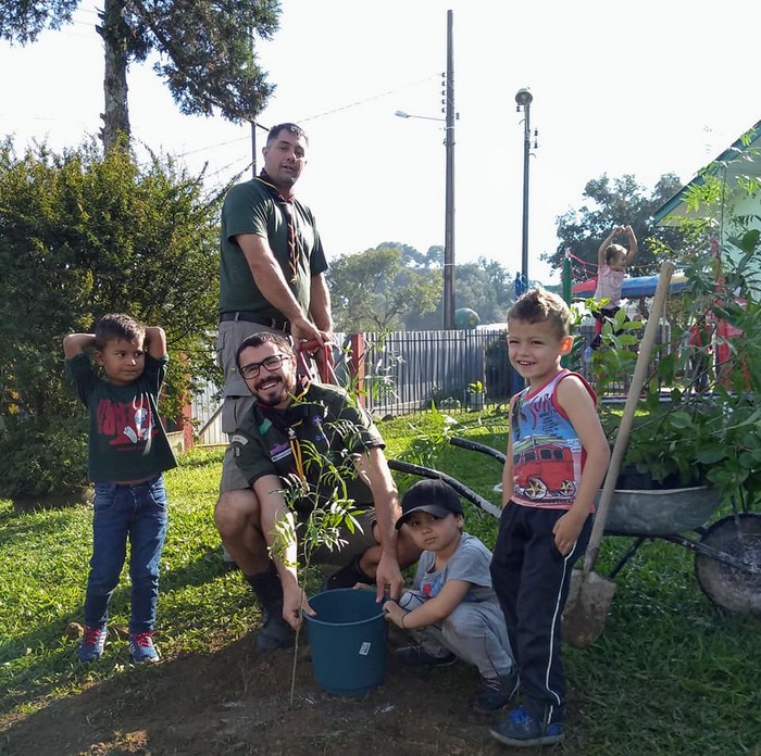 Junto aos pais e alunos da escola desenvolveram ações ao ar livre que proporcionaram a interação com a comunidade, mostrando o que é e como atua o grupo de escoteiros e ainda o plantio de árvores frutíferas – jabutica, pitanga e araçá, além de sombreiras e de flores (amor perfeito). Essas últimas atividades estão dentro de um programa de revitalização para as escolas.
