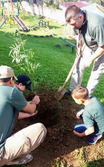 Hüebl salientou que as atividades de plantio de árvores fazem parte do projeto Muteco – Mutirão da Ecologia, uma das propostas pela União dos Escoteiros do Brasil para serem executadas anualmente. A outra atividade realizada na escola foi de Educação Escoteira, quando divulgam os objetivos do Grupo Escoteiros Falcão Negro.