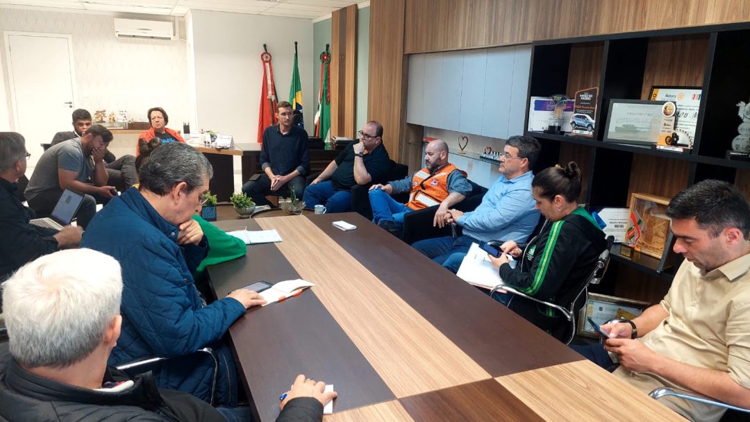 Na manhã desta terça-feira, 5, o prefeito de Mafra, Emerson Maas, presidiu uma reunião crucial no gabinete municipal, envolvendo secretários e diretores de diversas pastas, com o objetivo de traçar estratégias e definir ações de prevenção e mobilização frente às fortes chuvas, enchentes e alagamentos que têm assolado o município nos últimos dias.