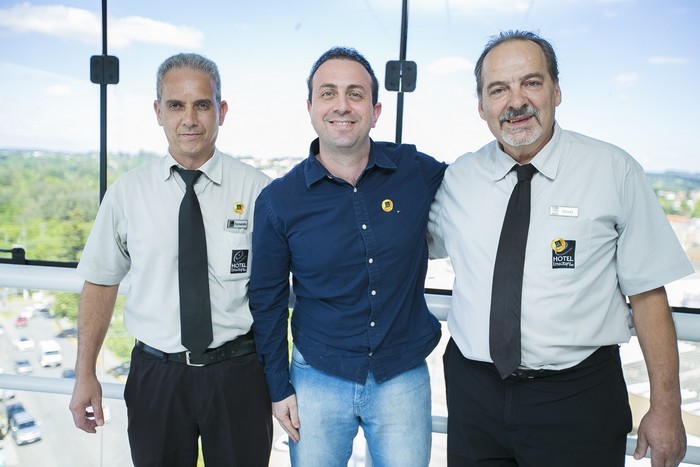 Fernando, Junior e Nini: dez anos de Hotel Emacite Flex (Foto: Renata Bosquetti)