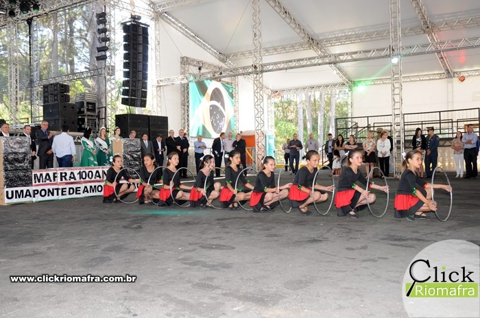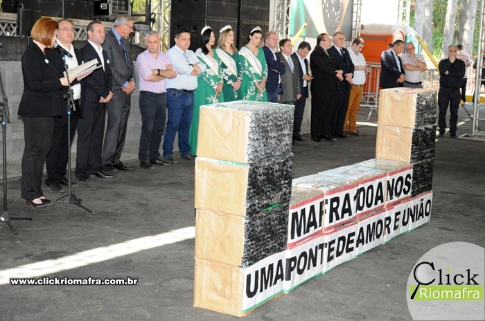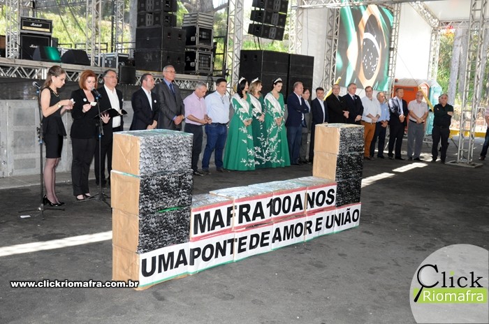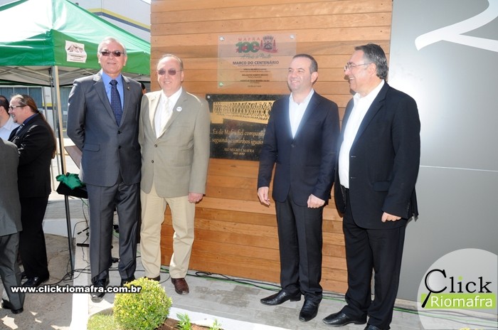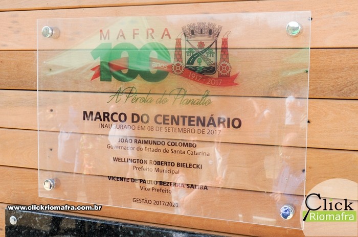 Na manhã desta sexta-feira (08), ocorreu a inauguração do Marco Arquitetônico do Centenário de Mafra, na entrada na cidade, na Avenida Nereu Ramos. O evento contou com a presença do Governador do Estado, Raimundo Colombo, além de deputados e autoridades locais de Rio Negro e Mafra. Ao meio dia foi realizada a abertura oficial dos festejos do centenário, contando também com a presença do Governador e demais autoridades. Houve os discursos e apresentações artÃsticas de escolas e bandas locais. O Click Riomafra realizou a cobertura fotográfica dos eventos. Confira as fotos: