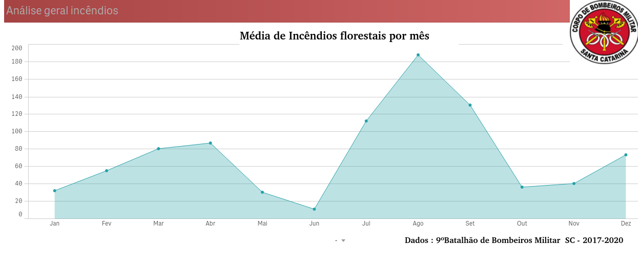 Outro fato preocupante é que segundo estatísticas da corporação, ainda nem alcançamos o auge dos incêndios florestais, que ocorre em agosto e setembro, conforme pode ser observado no gráfico, por isso a prevenção é de extrema necessidade.