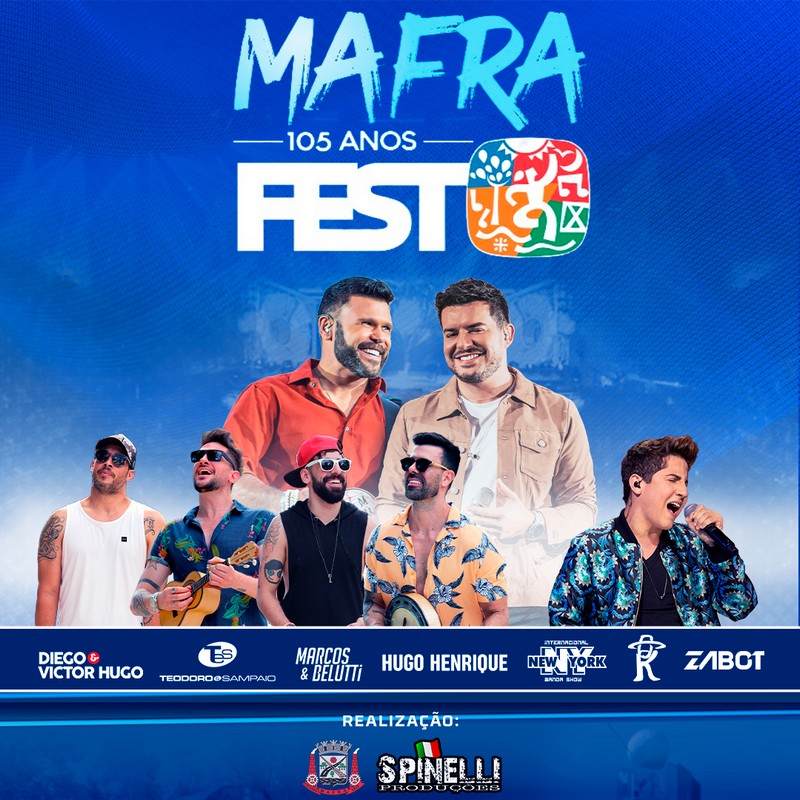 Mafra Fest terá grande programação para os 105 anos do Município. As principais atrações são os shows nacionais da dupla Marcos e Belluti, dia 9 de setembro, de Hugo Henrique e da banda Oba Oba Samba House, no dia 10.